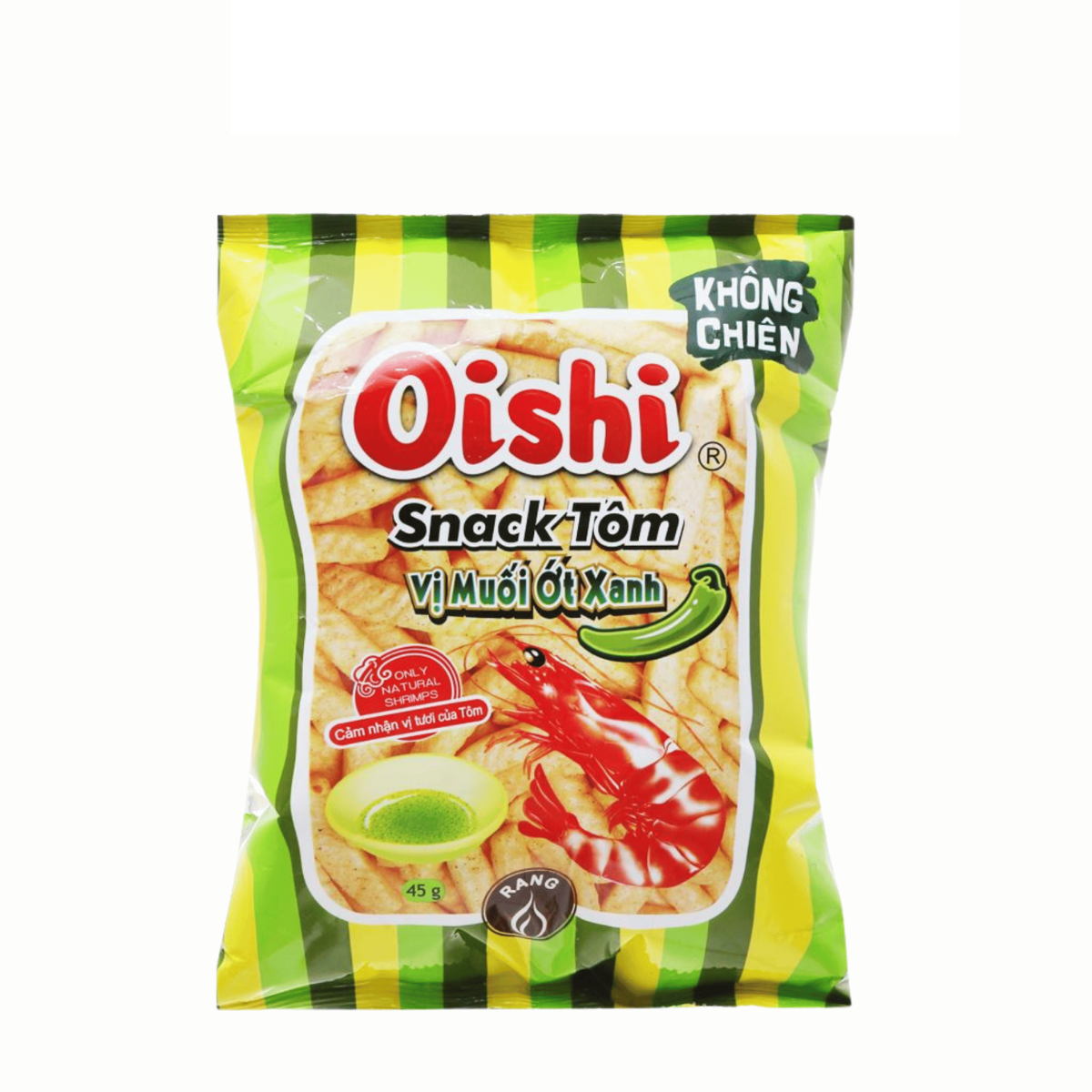 Oishi Green Chili Prawn Crackers deliver a crunchy texture and vibrant spiciness from real green chili seasoning. Made in Vietnam, this snack combines the rich umami of prawn with a refreshing spicy note, offering a distinctive flavor suited for Southeast Asian snack markets.